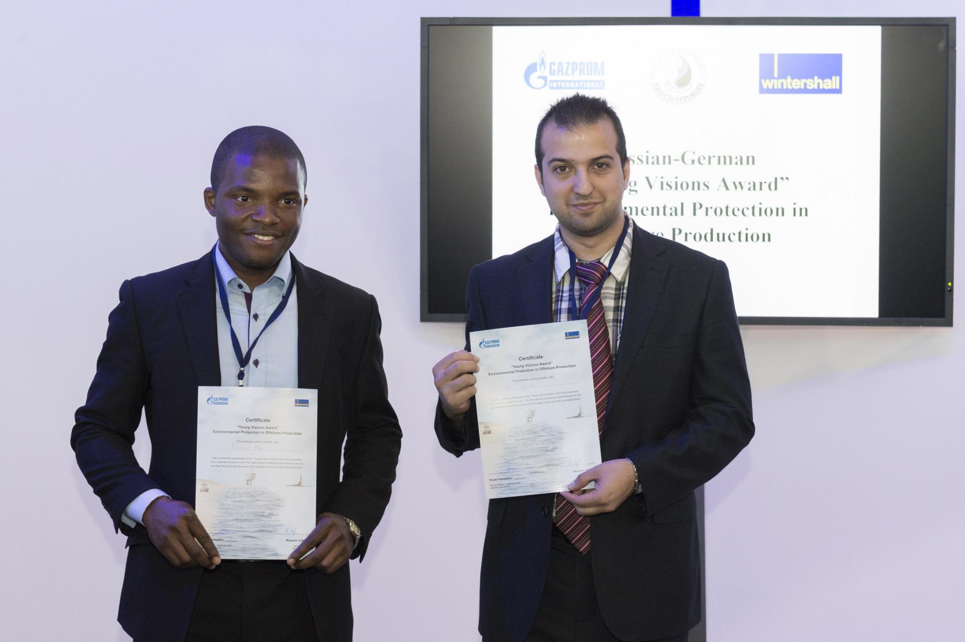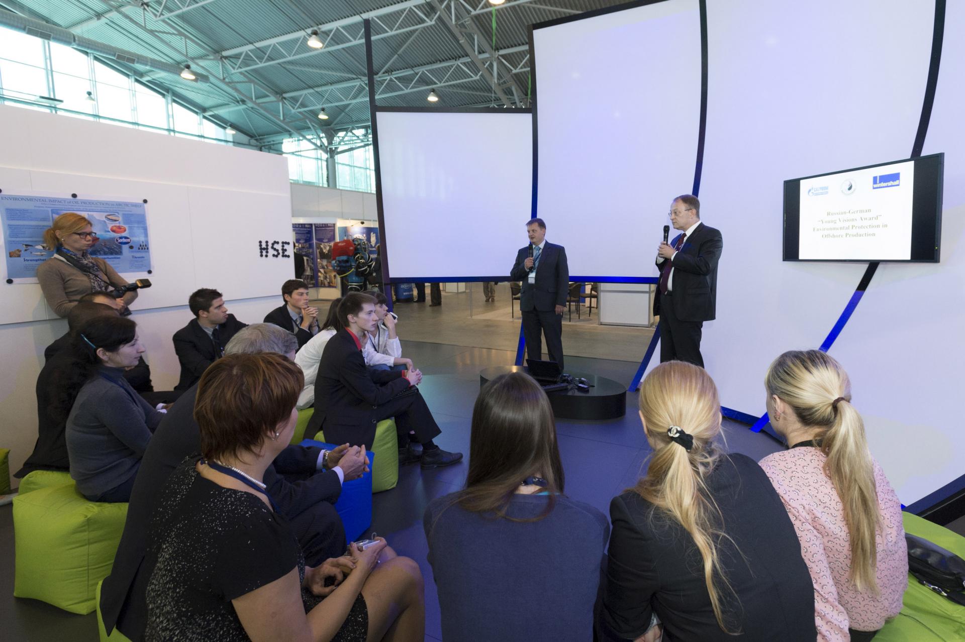 В рамках работы конференции и выставки на стенде компаний Wintershall (Германия) и Gazprom International состоялось подведение итогов совместного проекта Young Vision Award по привлечению студентов российских и немецких технических ВУЗов к поискам инновационных решений экологических проблем, которые могут возникать в результате работы на шельфе.