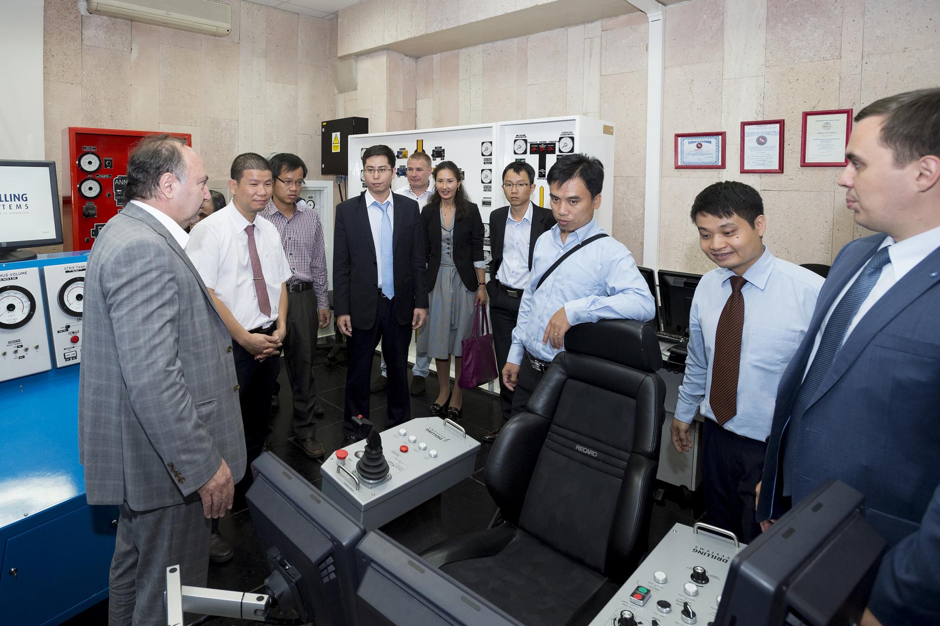 Помимо этого гости посетили базовое учебное заведение российского нефтегазового сообщества — РГУ нефти и газа им. И.М. Губкина, где для них была проведена экскурсия по кафедрам и музею университета. Вьетнамских коллег ознакомили с рядом лабораторий и тренажерных классов ВУЗа, где ведется подготовка по темам, связанным с разработкой морских месторождений.
